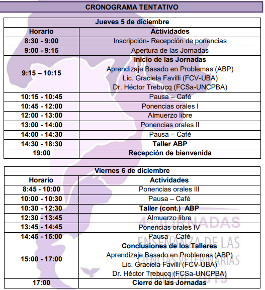Los continuos cambios mediados por factores políticos, económicos, ambientales, tecnológicos, sanitarios, constituyen un constante desafío para el desarrollo personal y colectivo, económico y social. En este contexto, la educación en Veterinaria debería propiciar la formación de graduados capacitados para desarrollarse profesionalmente en un ámbito de retos permanentes, tanto a nivel regional como global. A los efectos de elaborar propuestas para responder a estos requerimientos, la Asociación Argentina para la Enseñanza de las Ciencias Veterinarias (AAECiV), capítulo de la Sociedad de Medicina Veterinaria (SOMEVE), ha desarrollado tres jornadas de docencia, en 2013, 2015 y 2017, en el contexto de la Jornadas Internacionales de Veterinaria Práctica organizadas por el Colegio de Veterinarios de la Provincia de Buenos Aires. A partir del 2018, la AAECiV ha propuesto realizar las jornadas en las diferentes facultades de veterinarias de nuestro país. Por lo tanto, las 4.as Jornadas de Enseñanza de las Ciencias Veterinarias se realizarán en la Facultad de Ciencias Veterinarias de la UNCPBA los días 5 y 6 de diciembre de 2019.